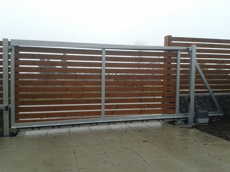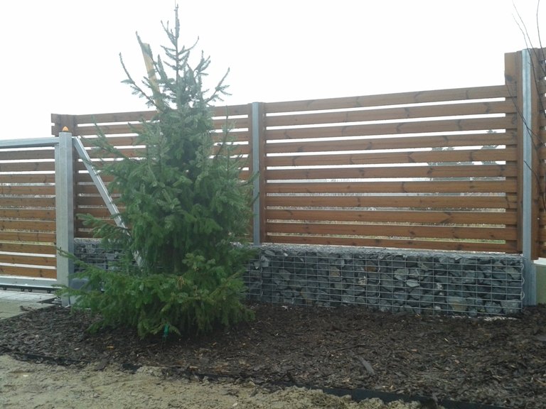 Boční plot do ulice je také ze sibiřské borovice, přičemž jako podezdívka je zde použita podhrabová deska. Tyto plotové desky jsou použity i ze zbývajících dvou stran, kde slouží jako spodní část pro průmyslové plotové panely.